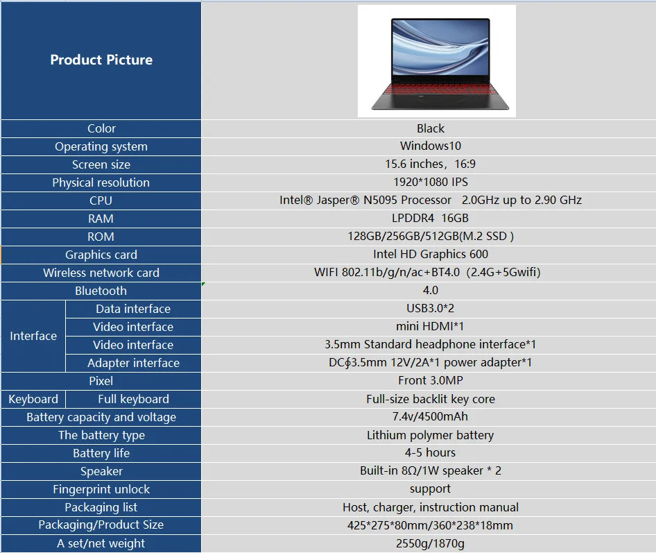 CPU: Intel® Jasper® N5095 Processor ; 2.0GHz up to 2.90 GHz