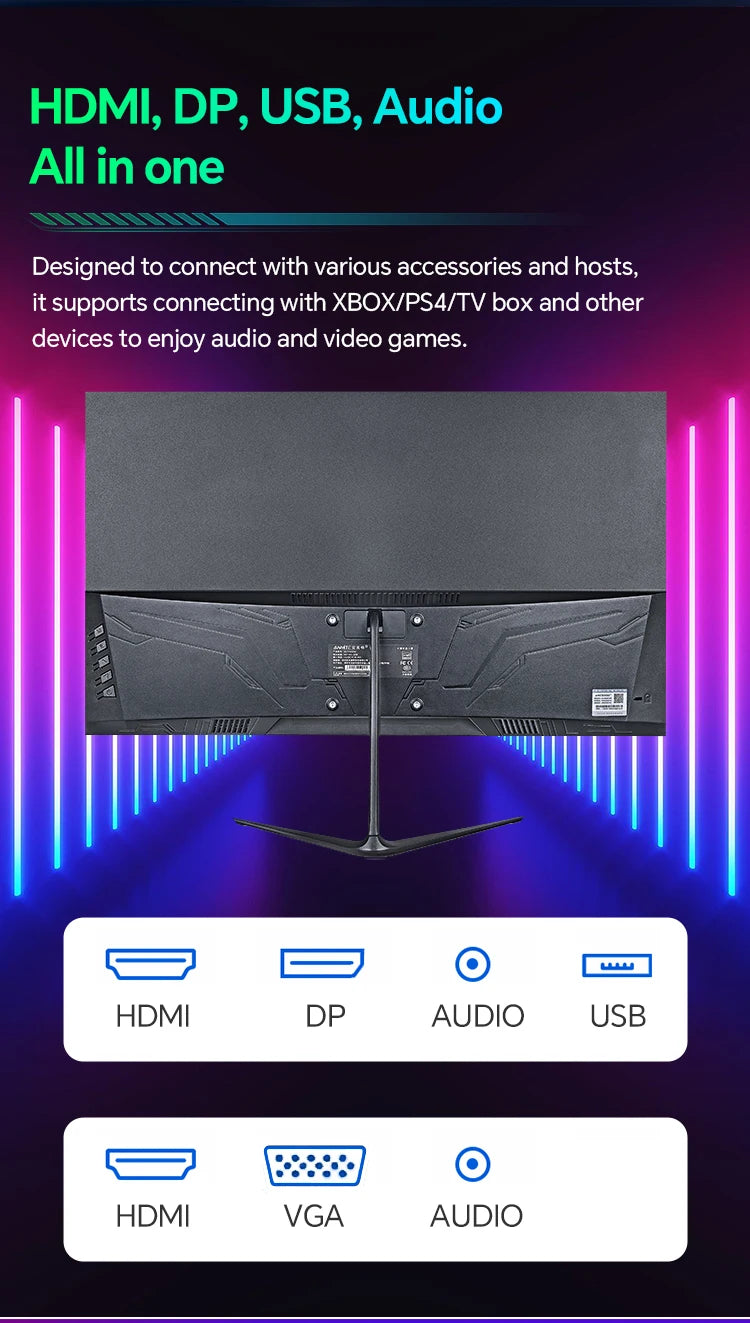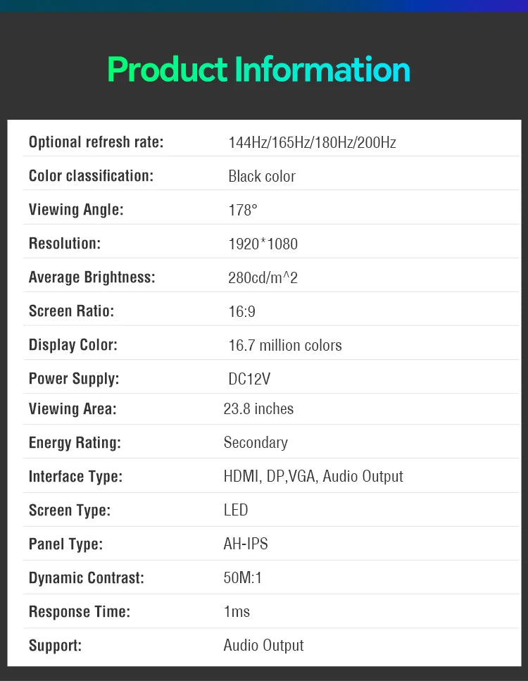 24" Anmite Micro-Bezel High Refresh Gaming PC & Office Desktop Monitor