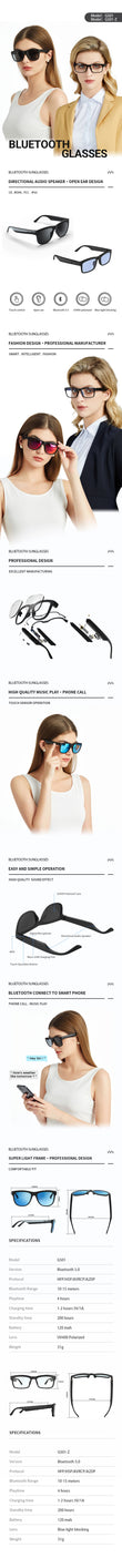 Smart Glasses Bluetooth 5.0 Earphones Wireless Headset Headphone UV400 Polarized Blue Light Blocking Music Eyeglassess