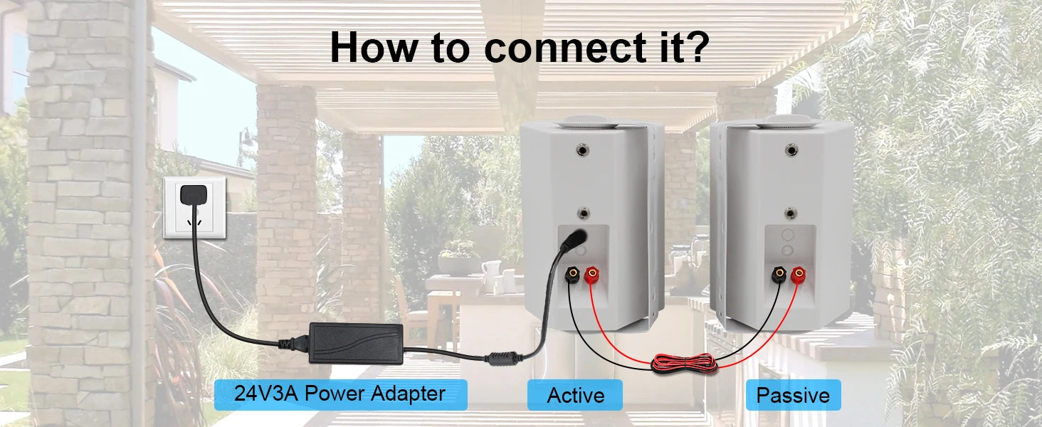 【What's in the box & Services】Outdoor Speakers *2 (Active + Passive), PWR-24V3A-US * 1, 12VDC-PWRCB * 1, Speakers Cables *1, Owner's manual *1 . All of our products have passed strictly quality control before we delivery for you, Herdio provide one year warranty and premium customers service within 24 hours .If you have any question that you can contact us in the first time and we are pleasure to help.