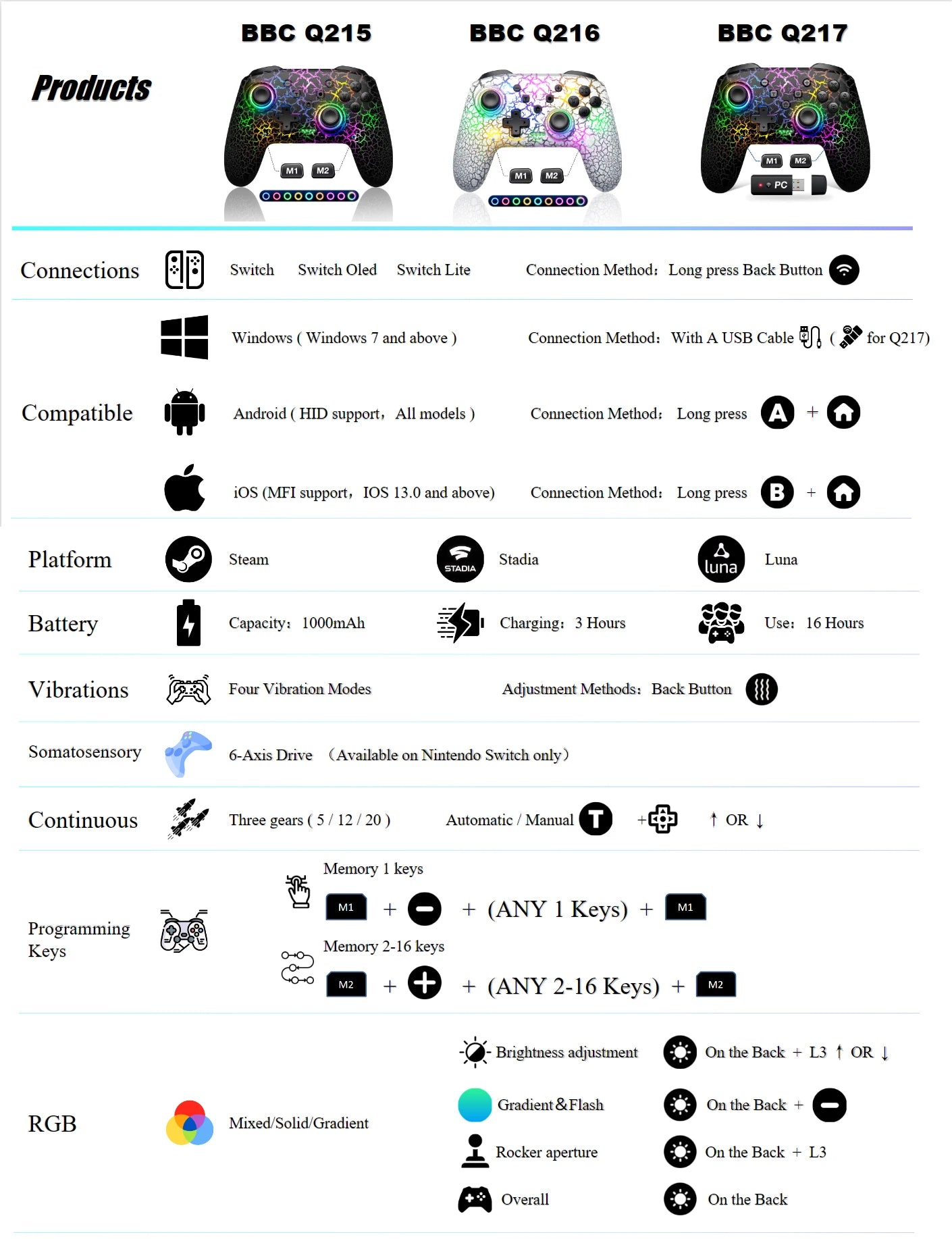BEBONCOOL Q217 Nintendo/PC/Andriod RGB Wireless Controller