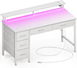CHENGWEI Gaming / Office Computer Desk with Power Outlets & LED Lighting