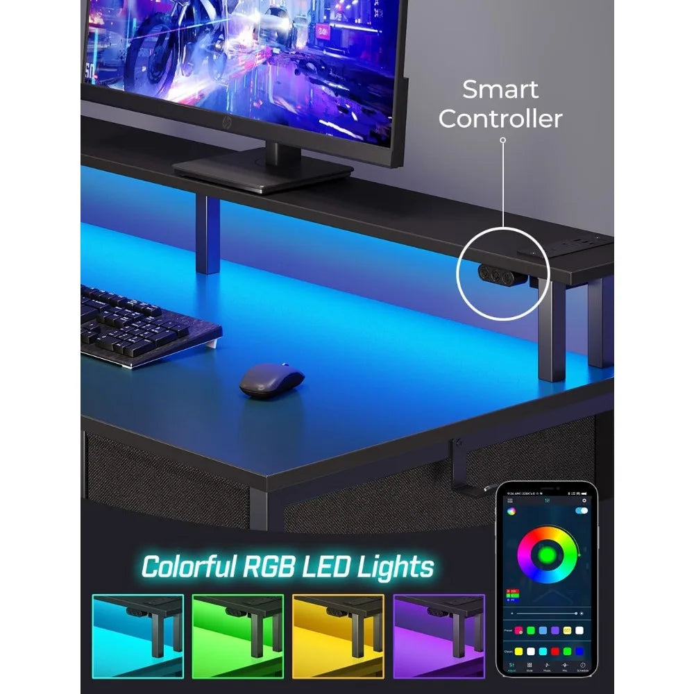 - Experience Gaming in a Whole New Way: Elevate your gaming experience with this feature-packed desk. It comes with customizable multi-color RGB LED light strips that offer 60,000 colors to choose from. You can control the colors, brightness, mode, and timer settings using a phone app or controller. The LED lights can also dance to the beats of your music, letting you immerse in a romantic and energetic gaming atmosphere