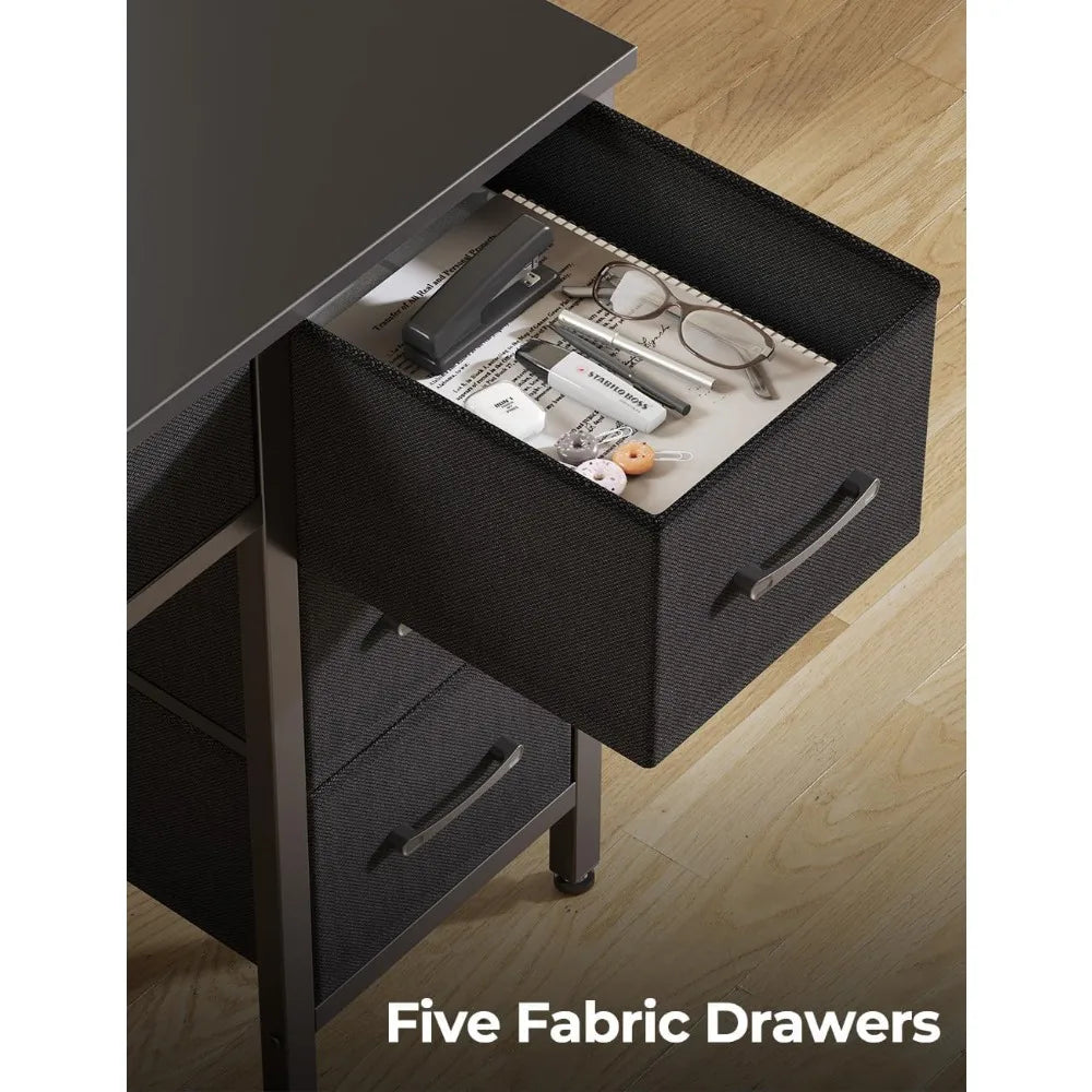 - Spacious Desk with 5 Convenient Fabric Drawers: Keep your workspace tidy with this desk's 5 durable drawers, perfect for storing documents, office and school supplies, or gaming equipment. The 3 left corner drawers are versatile and can be rearranged to fit your specific needs. Enjoy a clutter-free desktop with ease