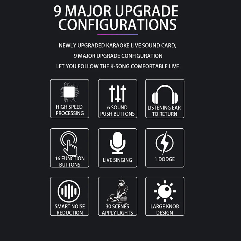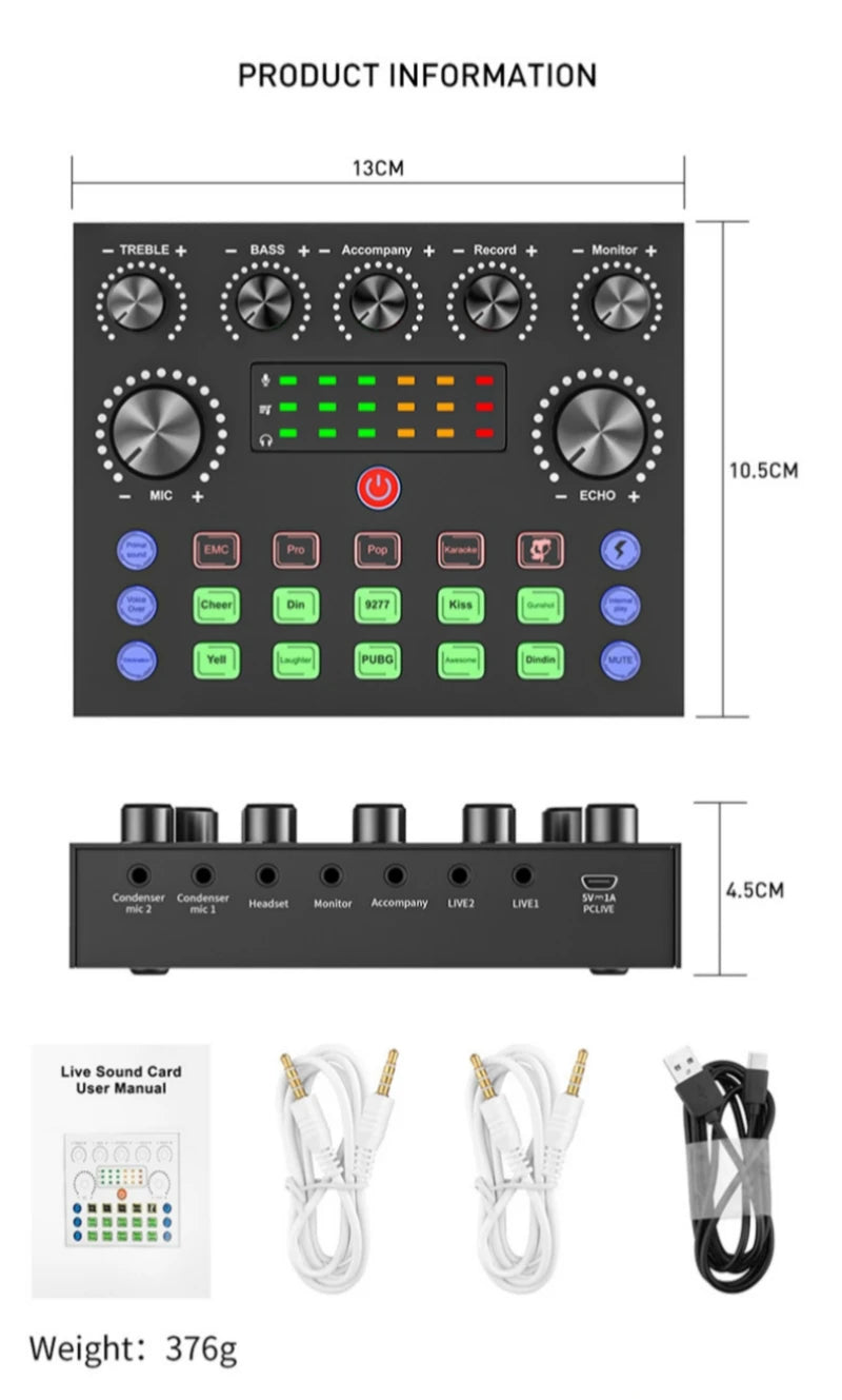 ★The sound card has sound effects, interesting modes and adjusting rotary knobs.