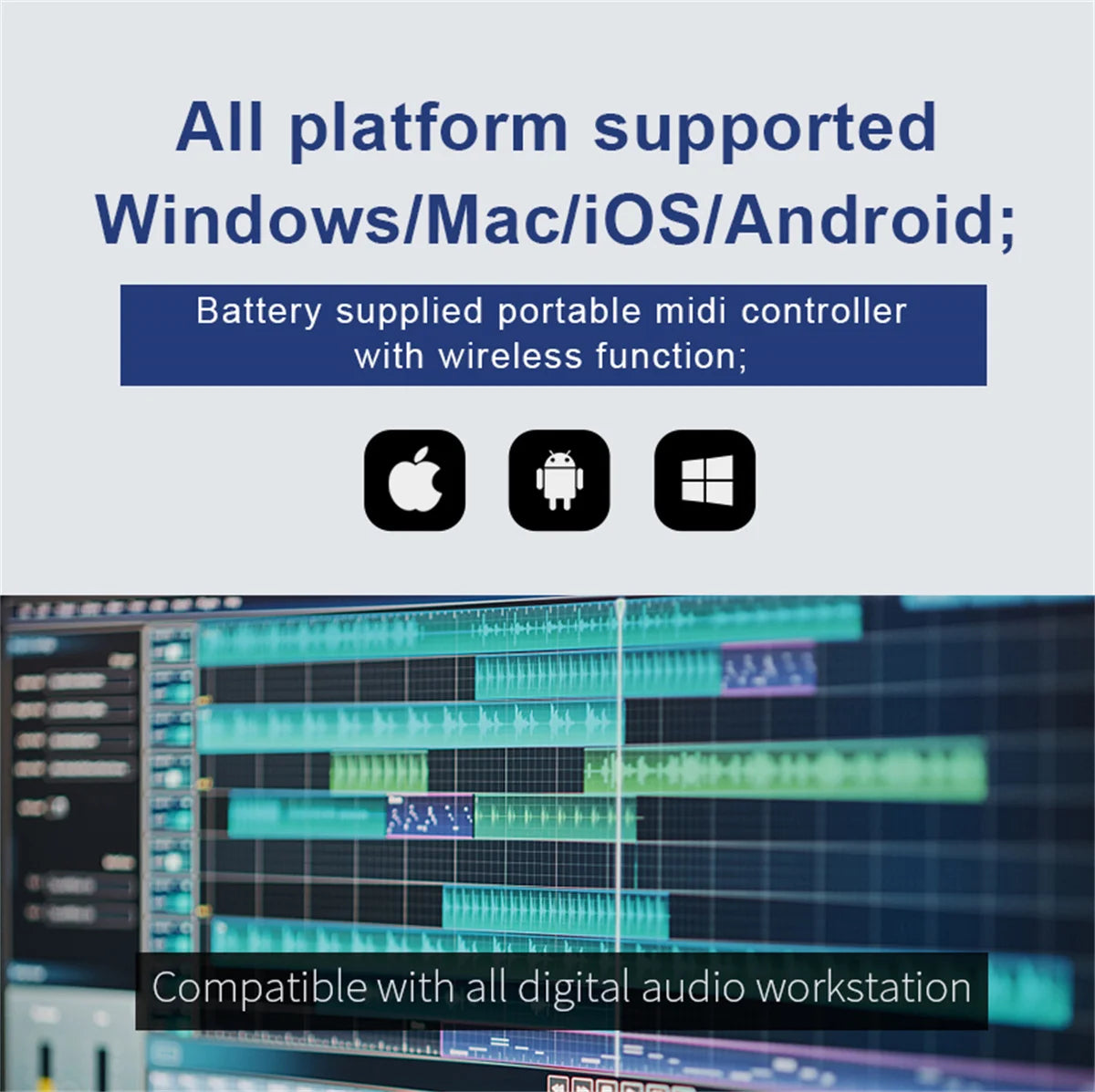 【Smart keyboard】Compatible with Windows, Mac OS, Android and iOS,The K5 compatible with all digital audio worksstation, Ableton live,Fl Studio,Cubase,Logic Pro X,Bitwig,Reason,Studio One,GarageBand(iOS) etc.,