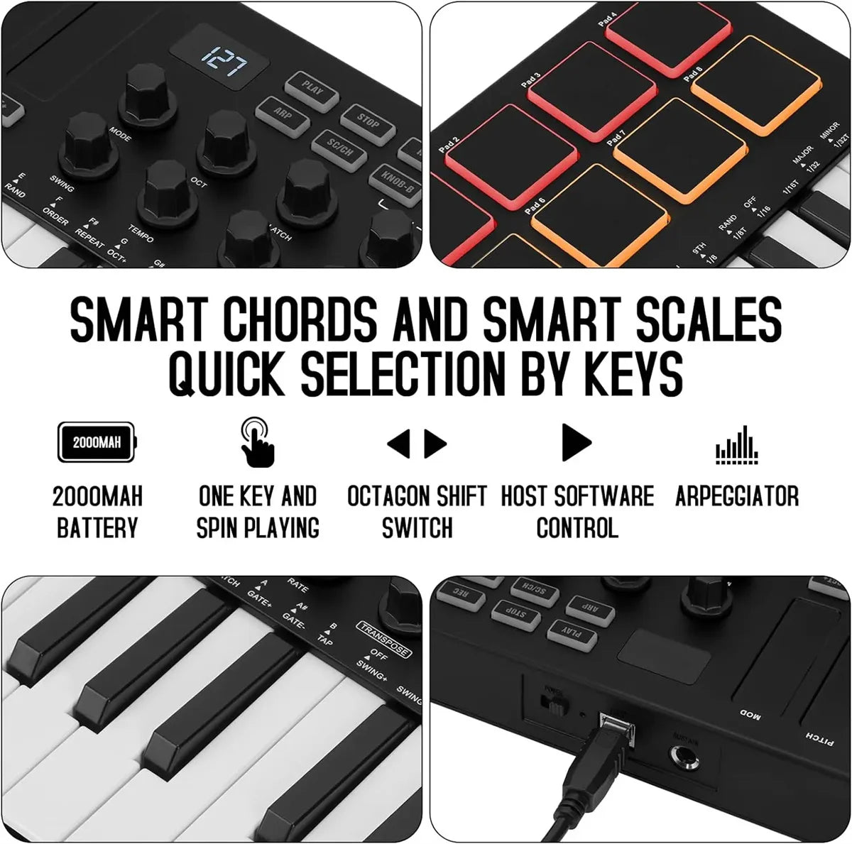 【Powerful keyboard】 Songwriters and Beat Maker Essential - USB powered MIDI controller with 25 mini MIDI keyboard velocity-sensitive keys for studio production, virtual synthesizer control and beat production.