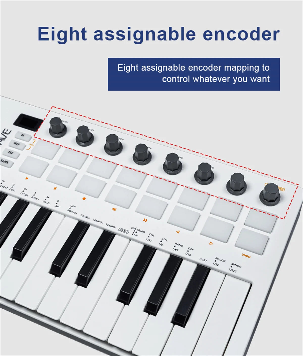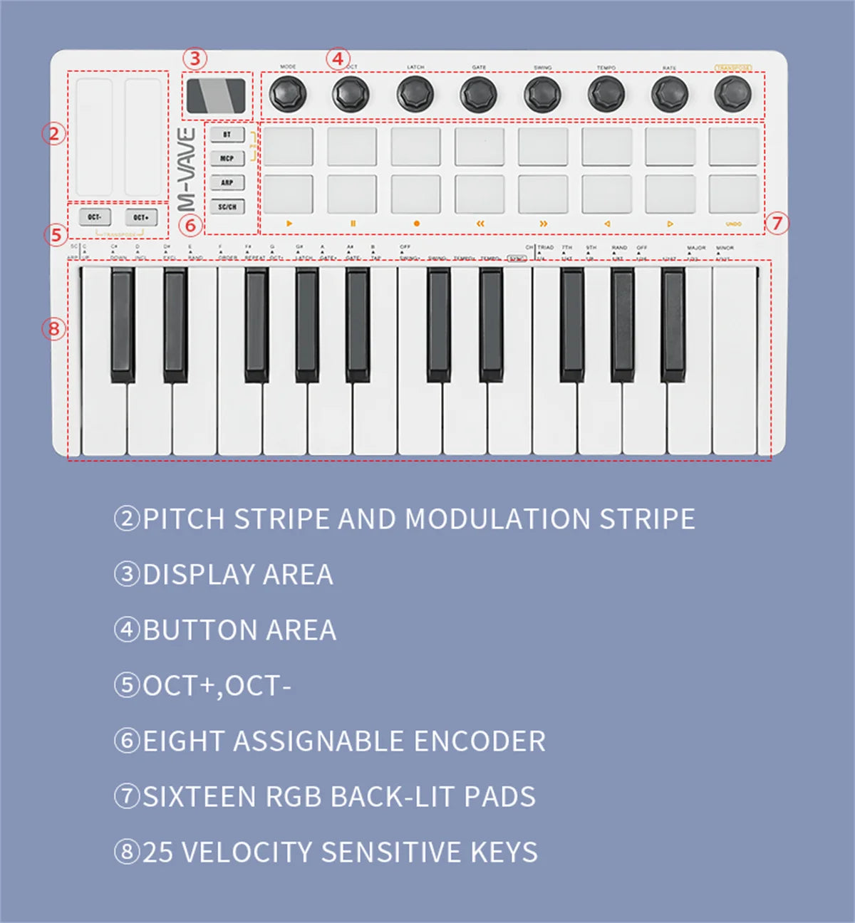 【Music Production】 25 velocity-sensitive keys, 16 RGB backlit velocity-sensitive pads, 8 assignable rotary enconders, 2 Capactive touch stripes pitch bend to all your music studio plugins for mixing, tweaking synth controls and more.