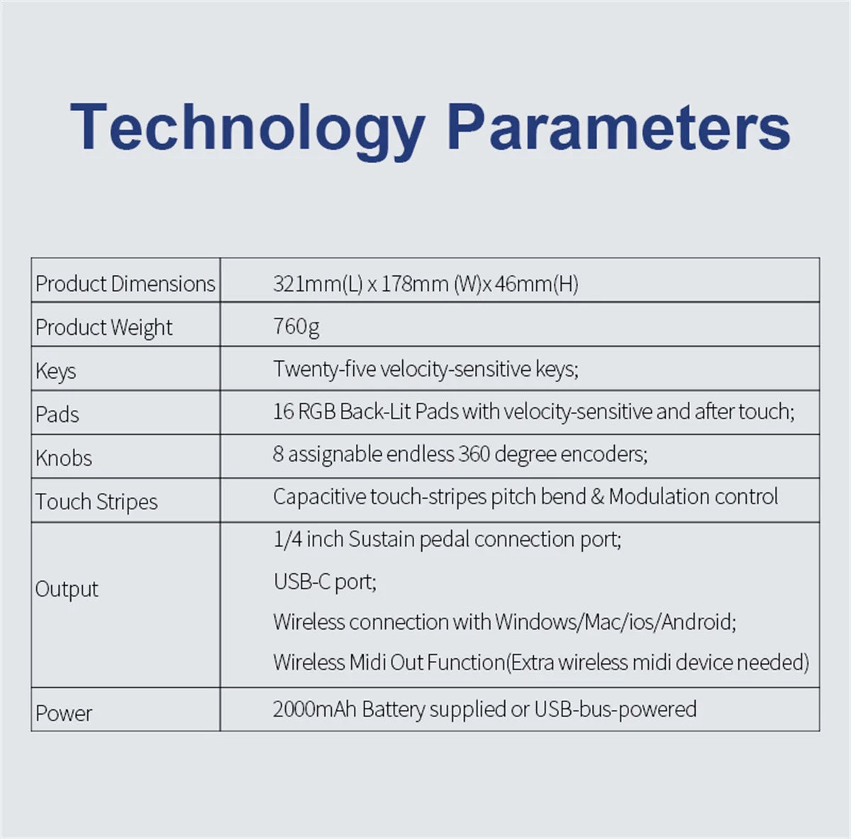 【Wireless keyboard】It's very compact and portable, and you can connect it wirelessly to your device with Bluetooth, built-in 2,000 mAh battery can work for about 16 hours, you can easily slip this ultra-portable MIDI keyboard into almost any bag and take it with you to the studio, cafe or hotel to compose music.