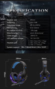 Computer Gaming Wired Headphones With Led Light & Gifts: 2 in 1 Cable Adapter