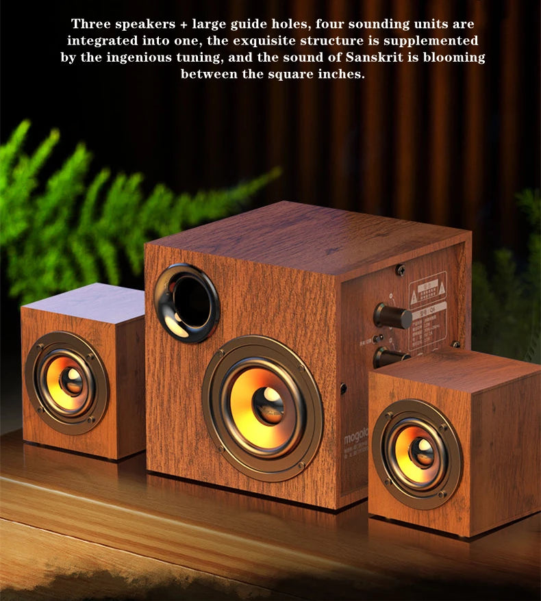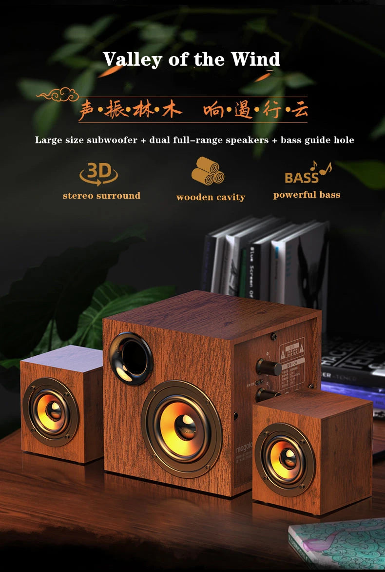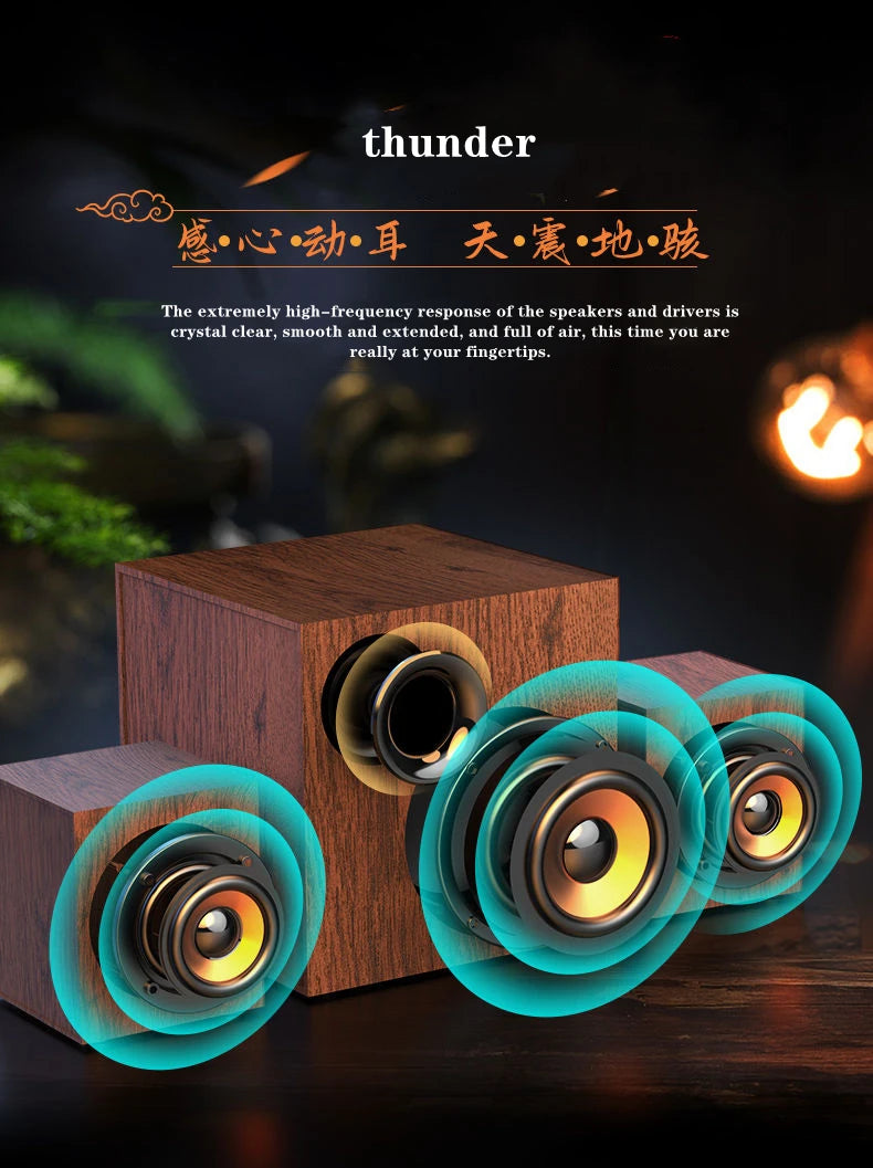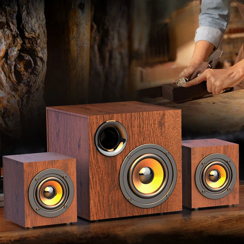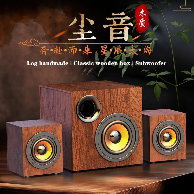Wooden plug-in desktop bluetooth 2.1 wired speaker high volume home computer audio overweight subwoofer notebook phone speaker