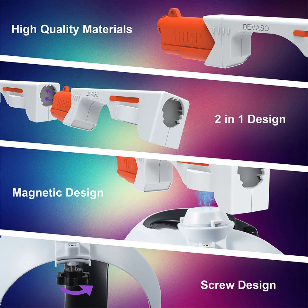 Magnetic VR Controllers Holding Game Accessories Quick Release Somatosensory Gun Mount VR Shooting Gun Controller for PSVR2 Feature: 1.Enhanced Shooting Precision: Designed specifically for Sony PS VR2, the fake gun stock features innovative and user-friendly design, ensuring a seamless gaming experience. It provides comprehensive assistance in improving shooting accuracy and stability, making every shot count. Specification: Origin: Mainland China Application: for Sony PlayStation VR2 Material: ABS Weight: 124g/225g Size: 375x215x60mm/14.76x8.46x2.36inch 580x375x101mm/22.83x14.76x3.98inch Note: