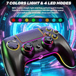 Wireless Controller Compatible with PS-5/Pro/PC/Mac/iOS/Android10/Steam Deck, Gamepad with 7 Colors RGB Lighting/Dual Vibration/Turbo/6 Axis Gyro Sensor/Programmable/Audio Jack/ Battery