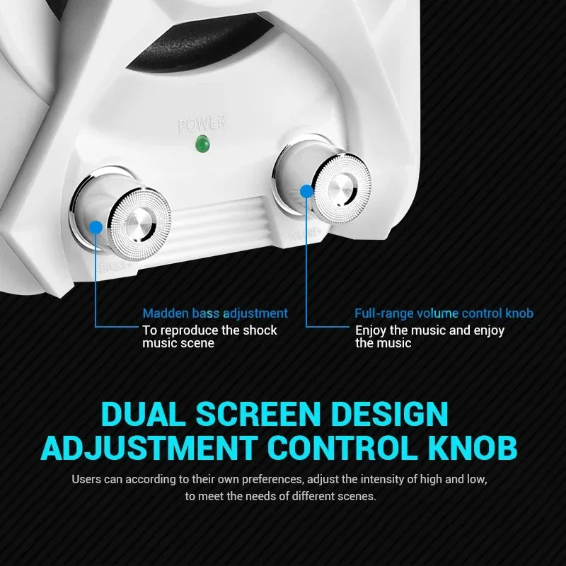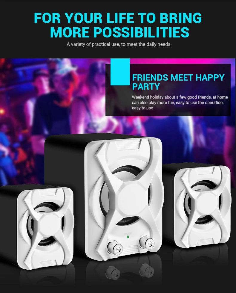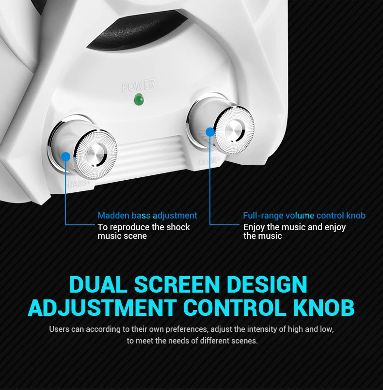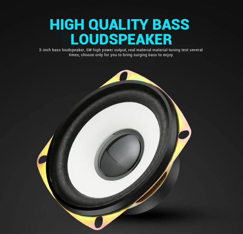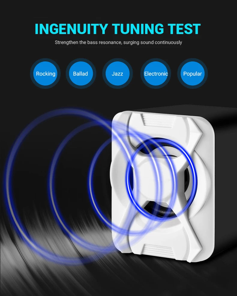 1.High quality wire: High-conductivity copper core wire to prevent poor contact, improve wear and corrosion resistance, and more stable. 2.Volume + Bass adjustment: Roller-controlled volume adjustment, convenient and easy to use. 3.2 x 4Ω 3W + 5W bass high quality horns: The sound is mellow and the sound quality is clear and shocked. 4.Superior materials: ABS injection molding material,bumping will not damage the speaker. 5.Simple design, easy to install and use: Two speakers can be placed separately 80cm,cable length 80cm.