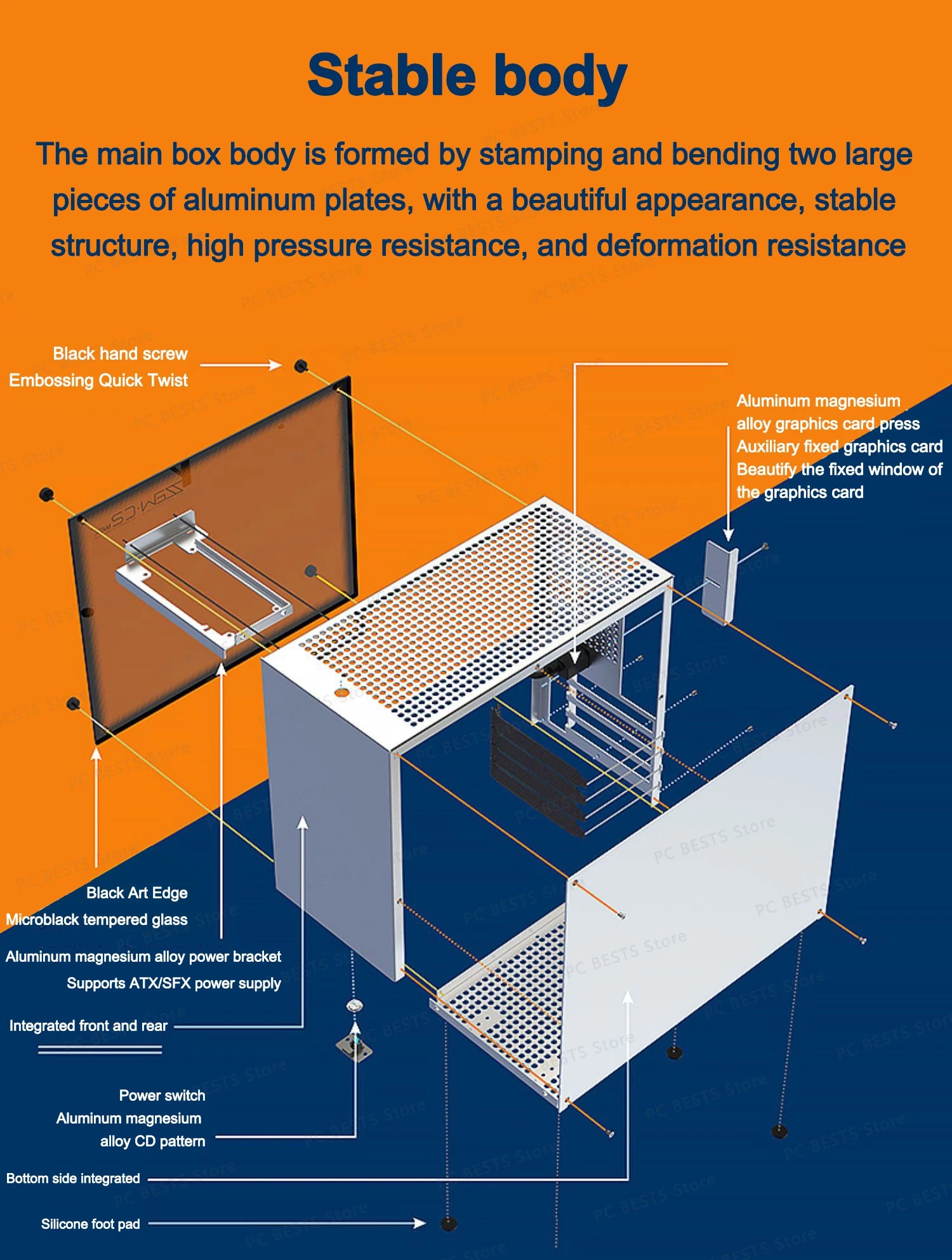 ZZAW C2 C2P M-ATX Computer Case Side Transparent MINI-ITX All Aluminum Desktop Office Small Chassis Supports Long Graphic Card