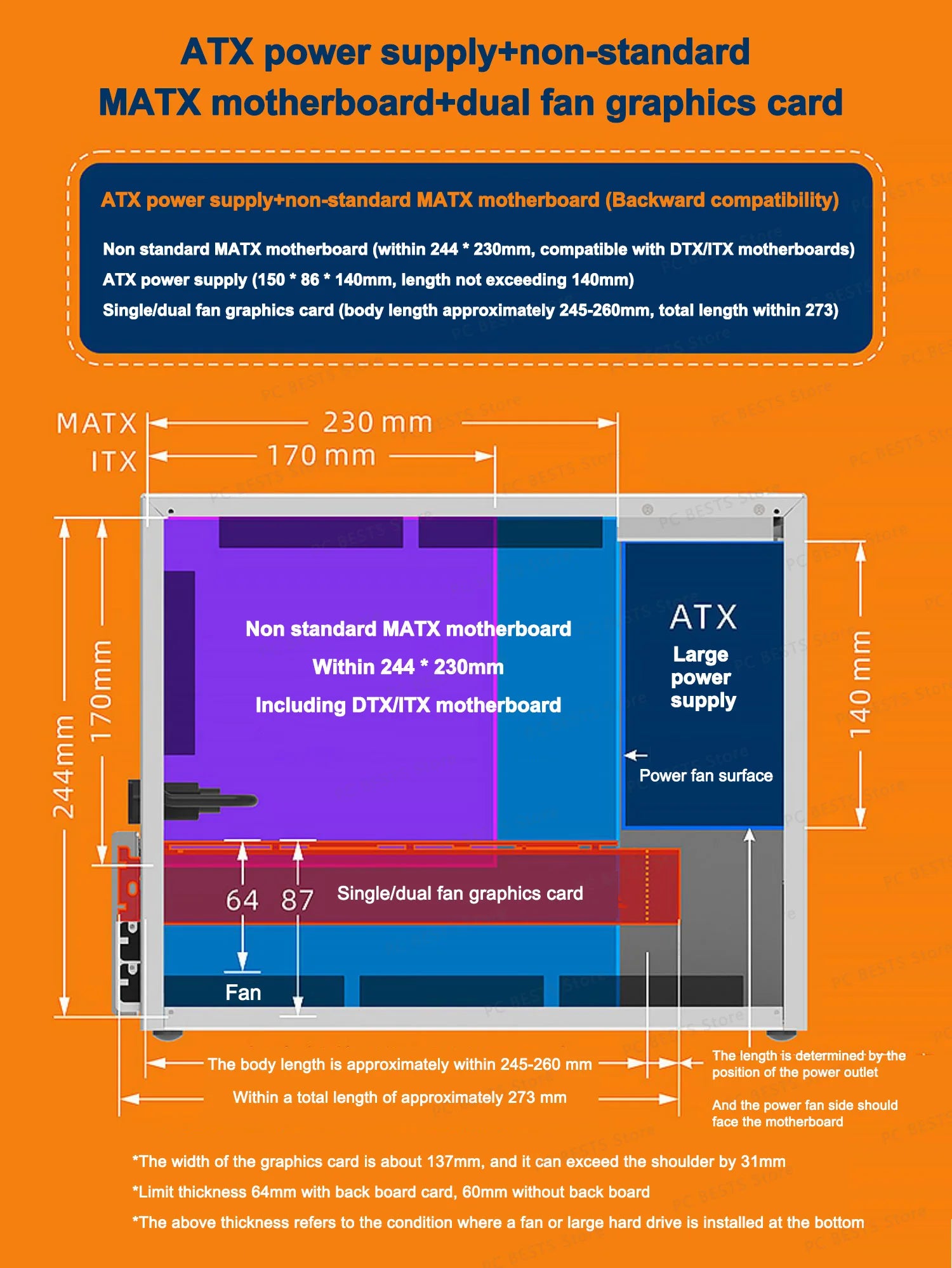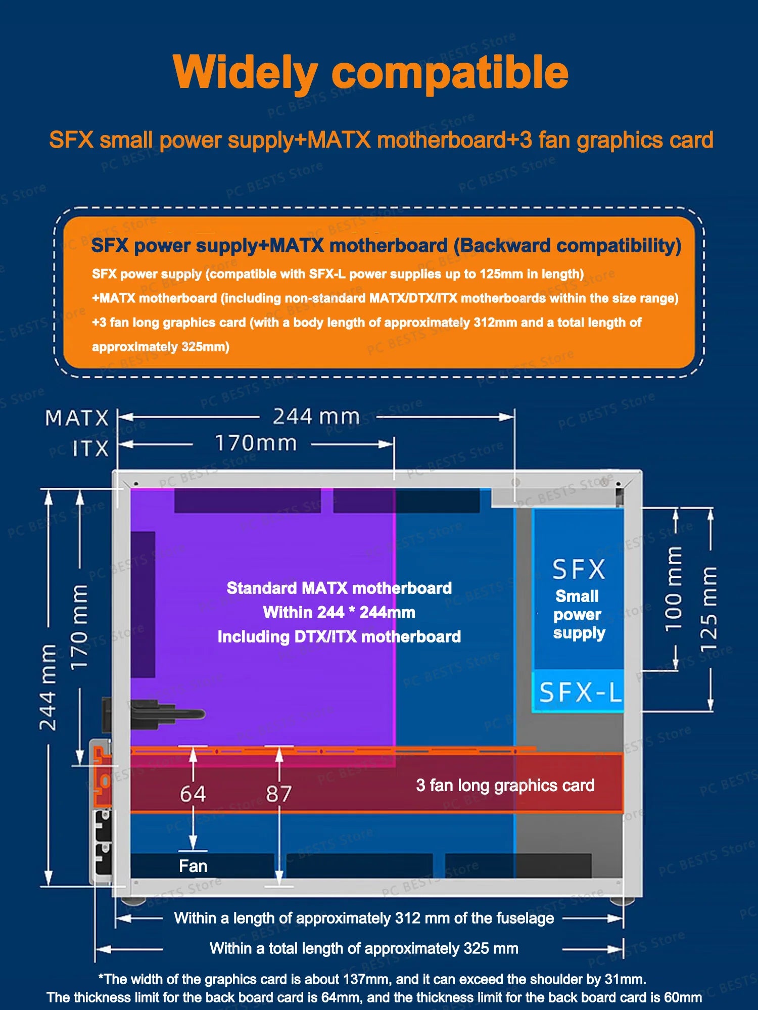 Standard MATX motherboard (244 * 244mm) limited to SFX power supply